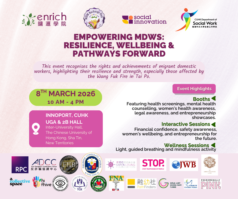 Empowering MDWs: Resilience, Wellbeing & Pathways Forward! Co-hosted with Social Innovation and CUHK Department of Social Work